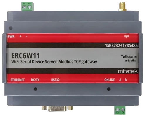 Seri portlu cihazların kablosuz olarak WiFi ağlarından okunması için kullanılan protokol dönüştürücümüzün tek RS232 portlu modelidir, sabit RS485 portu ve aynı zamanda Modbus RTU-Modbus TCP protokol çevirici özelliği bulunmaktadır.